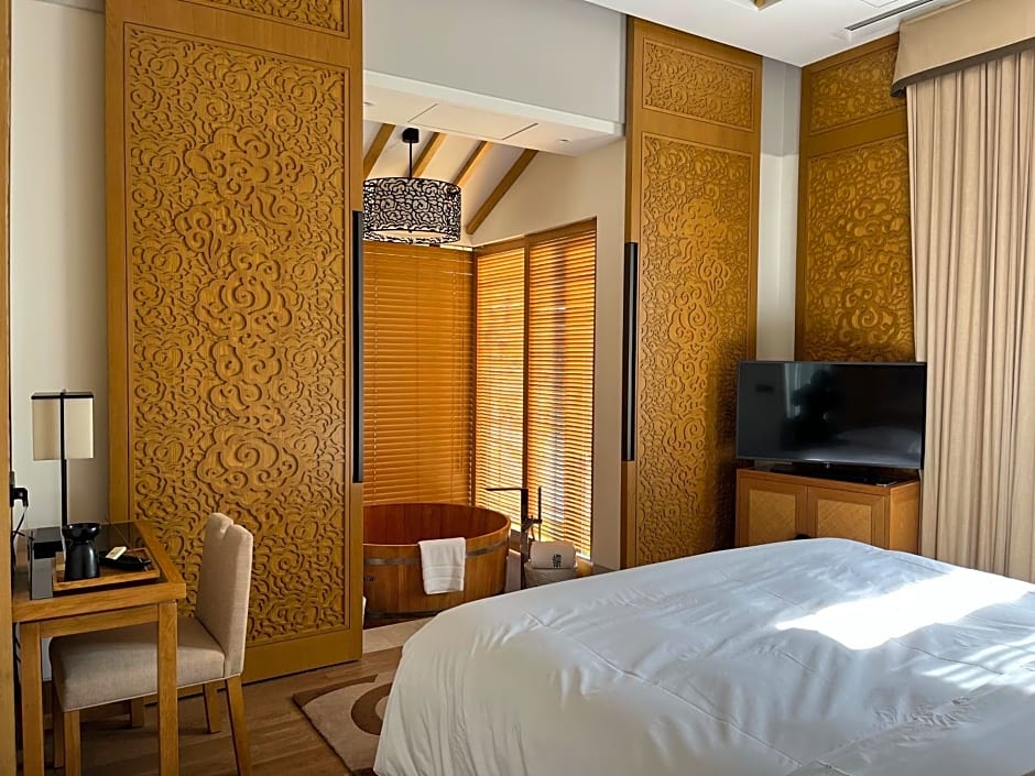 This villa's special feature is the hot tub. The air-conditioned villa features 1 bedroom and 1 bathroom with a bath and a shower. The well-equipped kitchen has a stovetop, a refrigerator, kitchenware and an oven. Featuring a terrace with garden views, this villa also provides a mini-bar and a flat-screen TV with cable channels. The unit offers 1 bed.